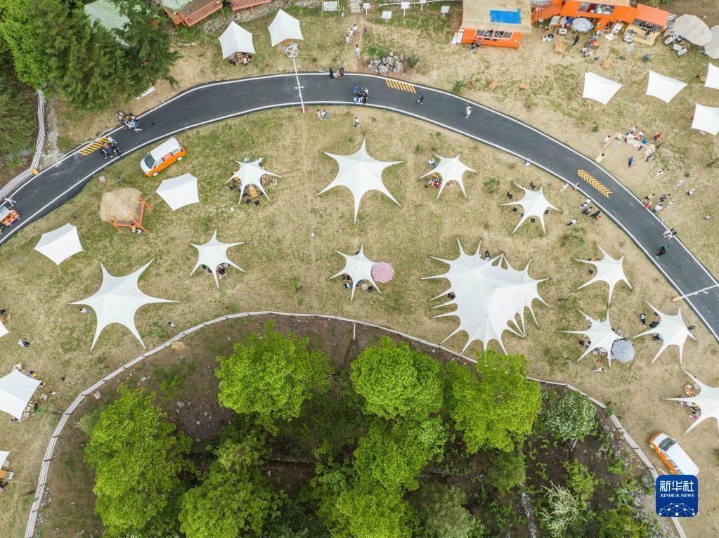 5月1日,游客在貴州省畢節(jié)市赫章縣硐上村游玩(無(wú)人機(jī)照片)。