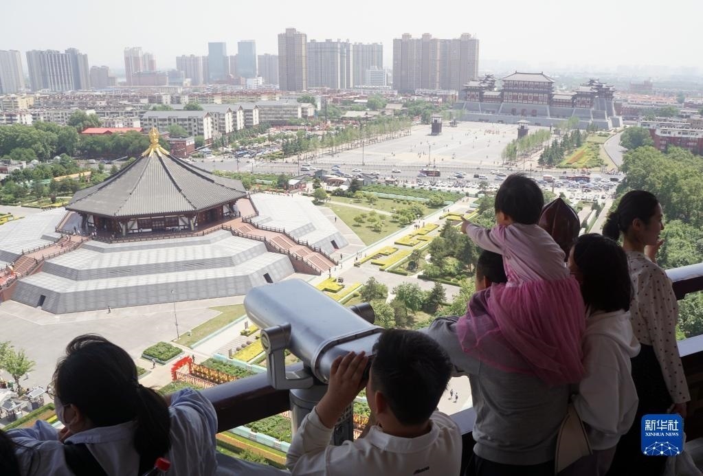 5月1日,游客在河南洛陽(yáng)隋唐洛陽(yáng)城國(guó)家遺址公園游覽。