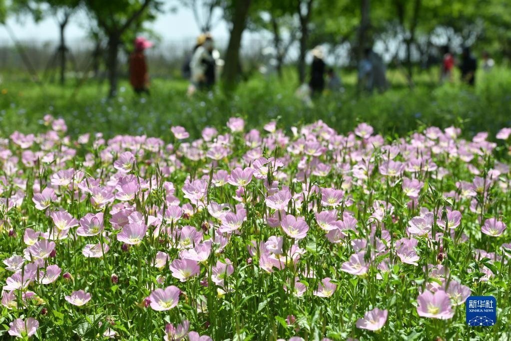 5月1日,游客在貴州省黔東南苗族侗族自治州丹寨縣龍泉山景區(qū)賞花游玩。