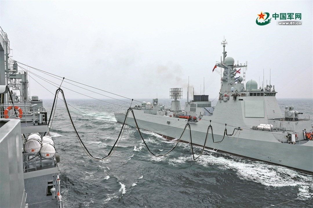 “海上補給部署!”千島湖艦抵達目標海域不久,接到任務(wù)指令。官兵迅速確定航向、航速。與此同時,受補艦快速進入補給陣位?!芭椋 彪S著撇纜槍一聲脆響,引纜徑直飛向受補艦。不多時,??占芷鹨坏赖冷撍鳎瑑膳炘诓ǚ謇斯乳g并駕齊驅(qū)。補給口令下達,兩艦官兵默契配合、精準對接,快速展開補給作業(yè)。