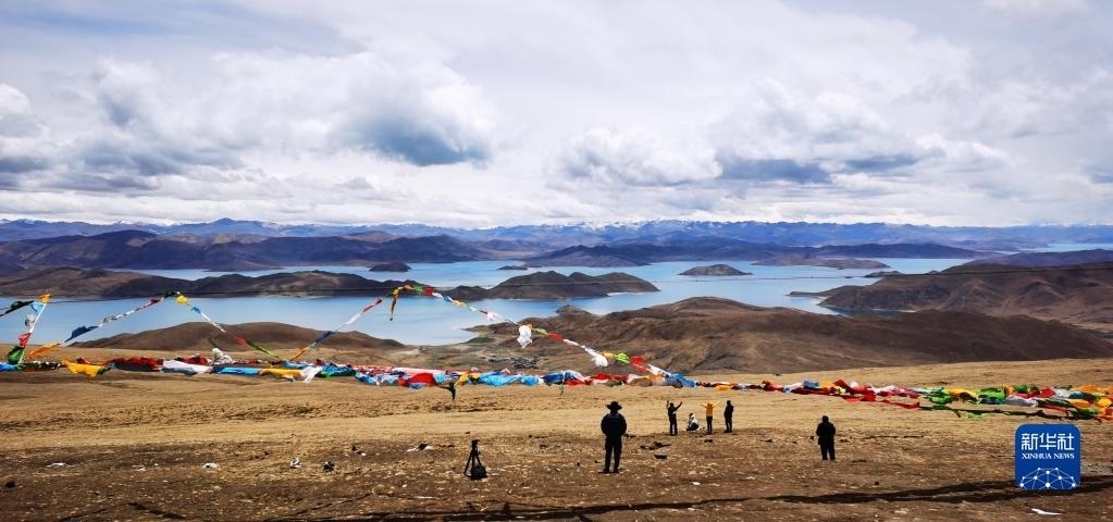 游客在羊卓雍錯(cuò)魯日拉欣賞美景(5月1日攝,手機(jī)照片)。
