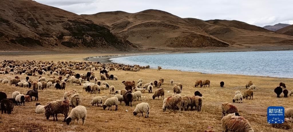 羊卓雍錯(cuò)湖邊的羊群(5月1日攝,手機(jī)照片)。