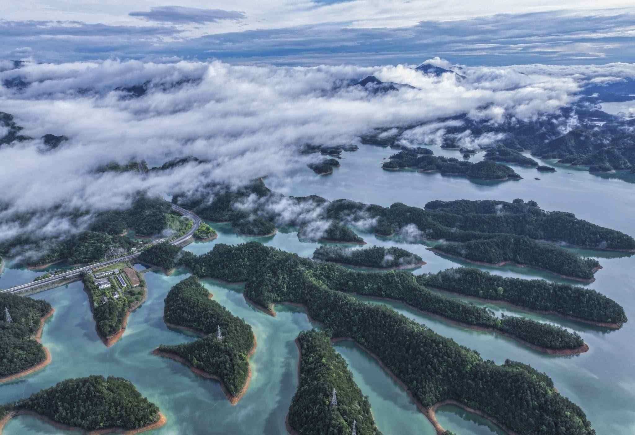 杭州:雨后千島湖晨霧繚繞