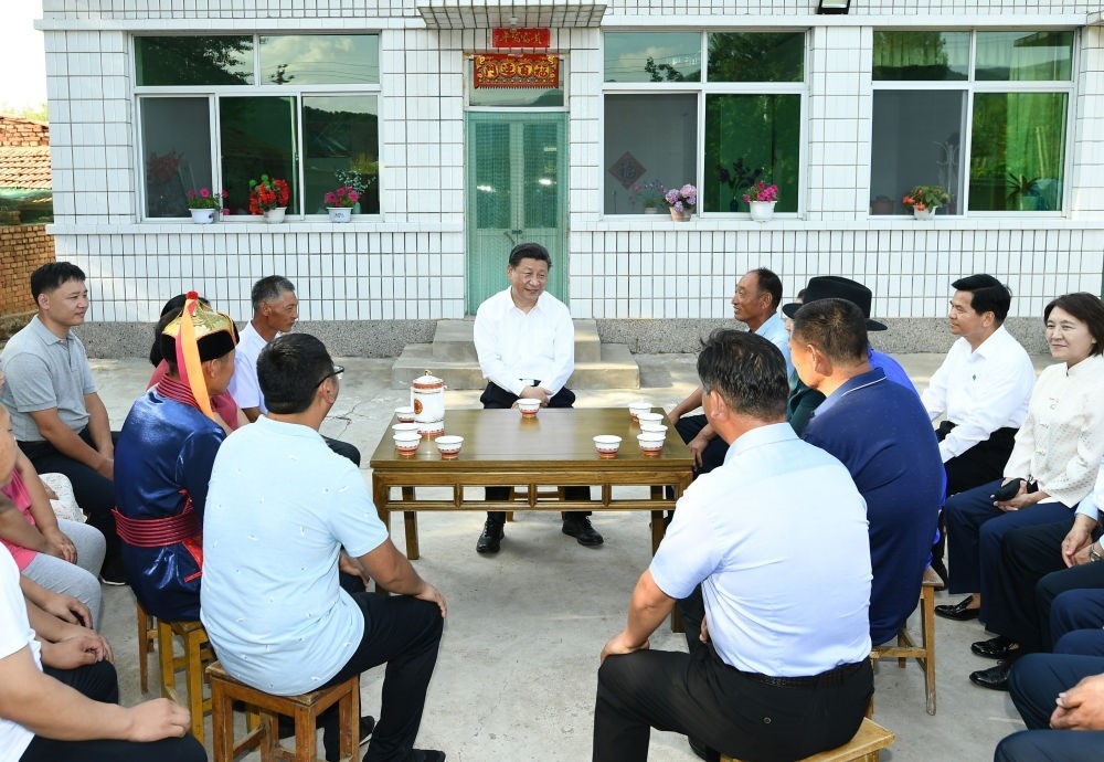 2019年7月15日至16日,習(xí)近平在內(nèi)蒙古考察并指導(dǎo)開展“不忘初心、牢記使命”主題教育。這是15日下午,習(xí)近平在赤峰市喀喇沁旗河南街道馬鞍山村村民張國利家,同基層干部群眾代表座談交流。