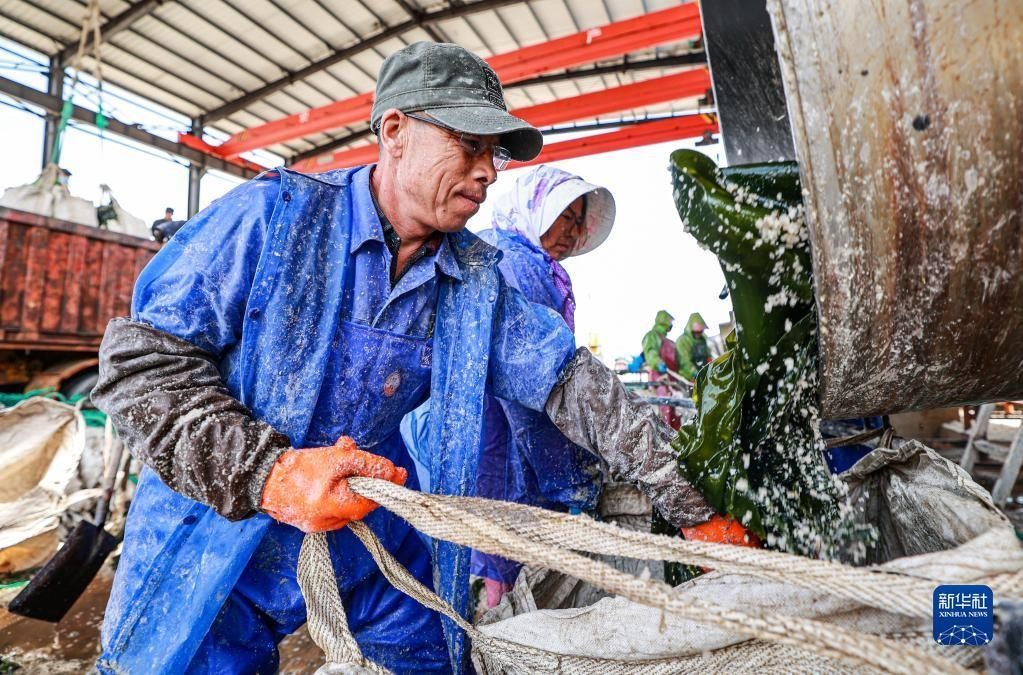 山東省榮成市被譽為“中國海帶之鄉(xiāng)”,海帶年產(chǎn)量43萬噸,其中鹽漬海帶近26萬噸,產(chǎn)品暢銷國內(nèi)外市場。新華社發(fā)(李信君 攝)