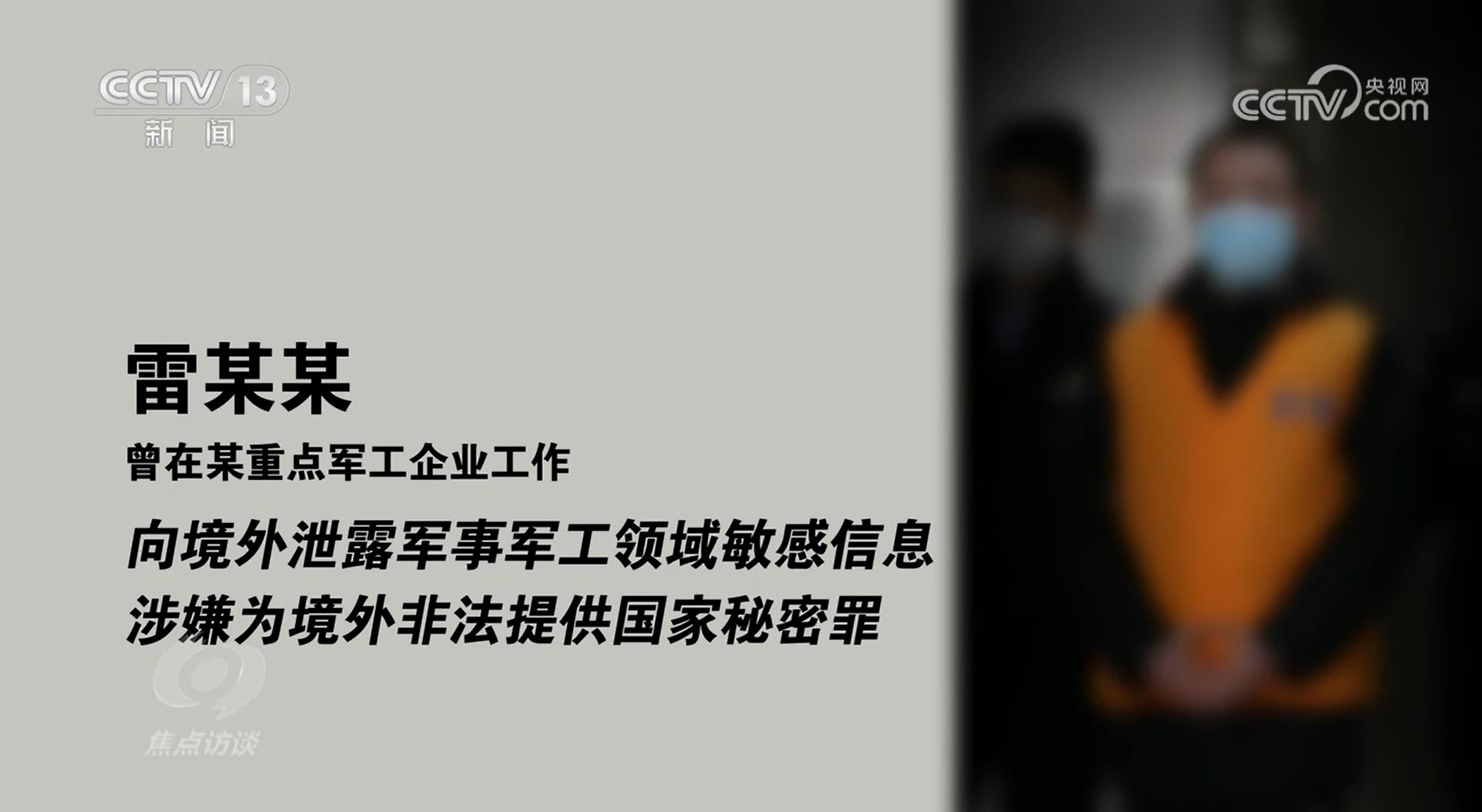 雷某某,曾在我國某重點(diǎn)軍工企業(yè)工作,因向境外泄露軍事軍工領(lǐng)域敏感信息,涉嫌為境外非法提供國家秘密罪。雷某某曾在某高校與某重點(diǎn)軍工企業(yè)合辦的博士后站工作。2020年3月,雷某某在博士后站出站,他在網(wǎng)上投寫的簡歷中,對自己重點(diǎn)軍工企業(yè)的工作經(jīng)歷進(jìn)行了詳細(xì)描述,這讓他成功進(jìn)入凱盛融英公司的視野,并成為這里的咨詢專家。