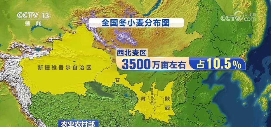 西北麥區(qū)包括陜西、甘肅、寧夏、新疆,冬小麥面積3500萬畝左右,占10.5%。