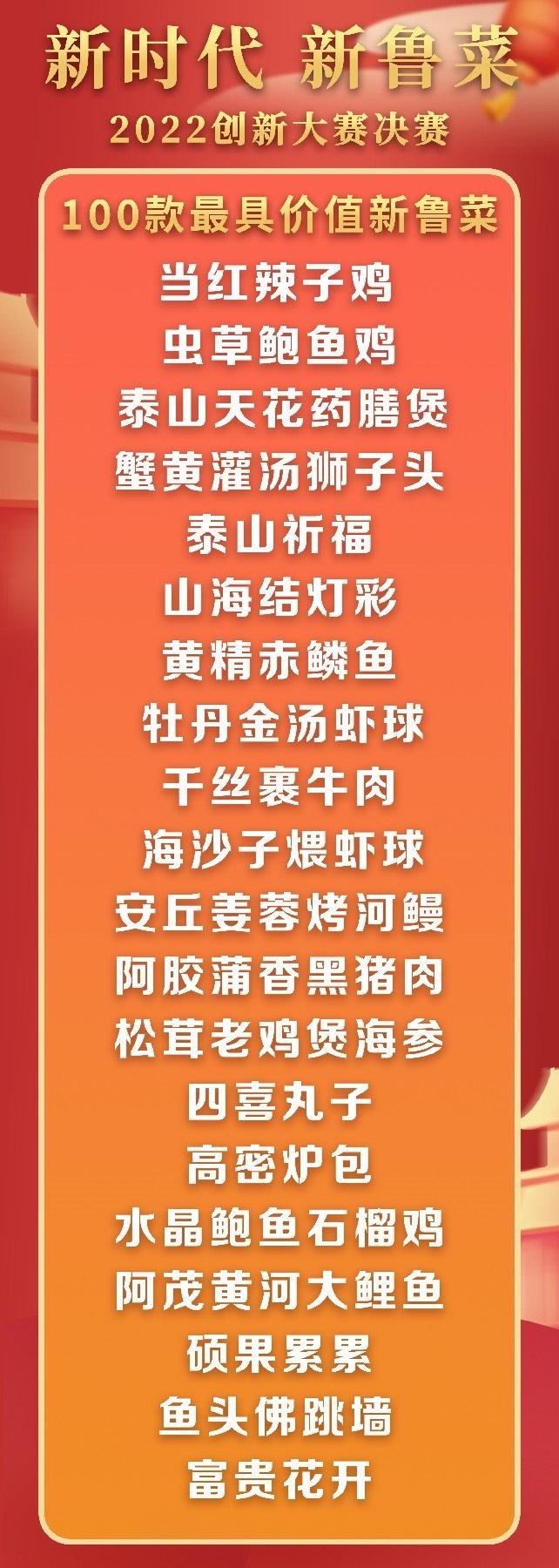 5月18日至19日,“新時(shí)代 新魯菜”2022創(chuàng)新大賽決賽暨頒獎(jiǎng)活動(dòng)在山東省濰坊市峽山區(qū)成功舉行,標(biāo)志著本屆大賽圓滿結(jié)束。經(jīng)過激烈角逐,大賽最終頒發(fā)出2022年度“十大魯菜創(chuàng)新菜品”、“20款我最喜愛的新魯菜”、“100款最具價(jià)值新魯菜”、“十大創(chuàng)新面點(diǎn)”、“預(yù)制菜轉(zhuǎn)化創(chuàng)新獎(jiǎng)”和“海外最佳傳播獎(jiǎng)”等獎(jiǎng)項(xiàng)。此外,大賽組委會(huì)還頒發(fā)了“最佳組織獎(jiǎng)”、“融媒貢獻(xiàn)獎(jiǎng)”和“特殊貢獻(xiàn)獎(jiǎng)”等獎(jiǎng)項(xiàng)。