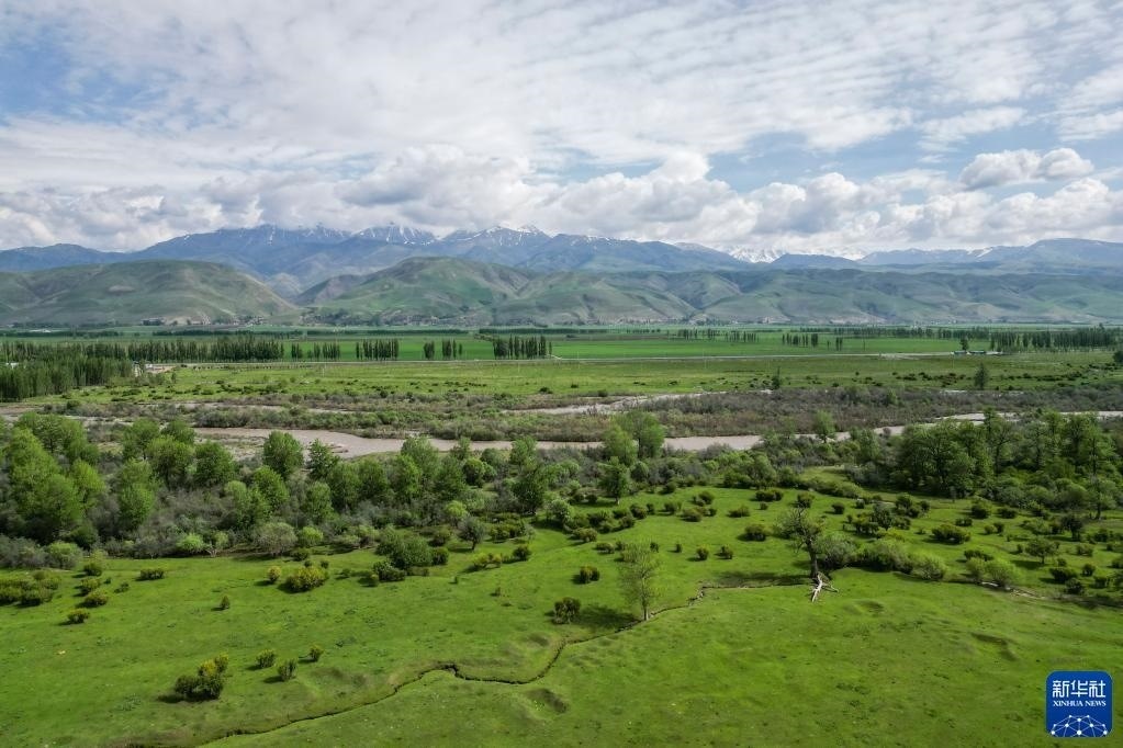 5月20日拍攝的那拉提河谷草原風(fēng)光(無人機照片)。