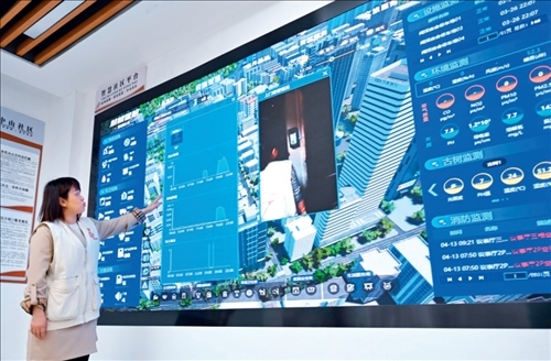 福建省福州市鼓樓區(qū)是國家智能社會(huì)治理綜合實(shí)驗(yàn)基地,社區(qū)工作者在鼓樓區(qū)鼓東街道中山社區(qū)介紹“智慧社區(qū)”建設(shè)情況(2023年4月25日攝)林善傳攝/本刊
