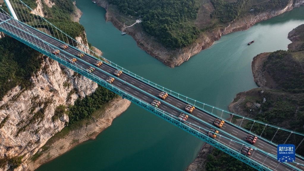 當(dāng)日,由貴州路橋集團(tuán)承建的金烽烏江大橋進(jìn)行靜態(tài)荷載試驗(yàn),48輛負(fù)載砂石的大型貨車有序行駛到固定的位置進(jìn)行對稱、偏心檢測,檢驗(yàn)橋梁結(jié)構(gòu)整體的施工質(zhì)量與受力性能,為橋梁竣工驗(yàn)收提供科學(xué)依據(jù)。