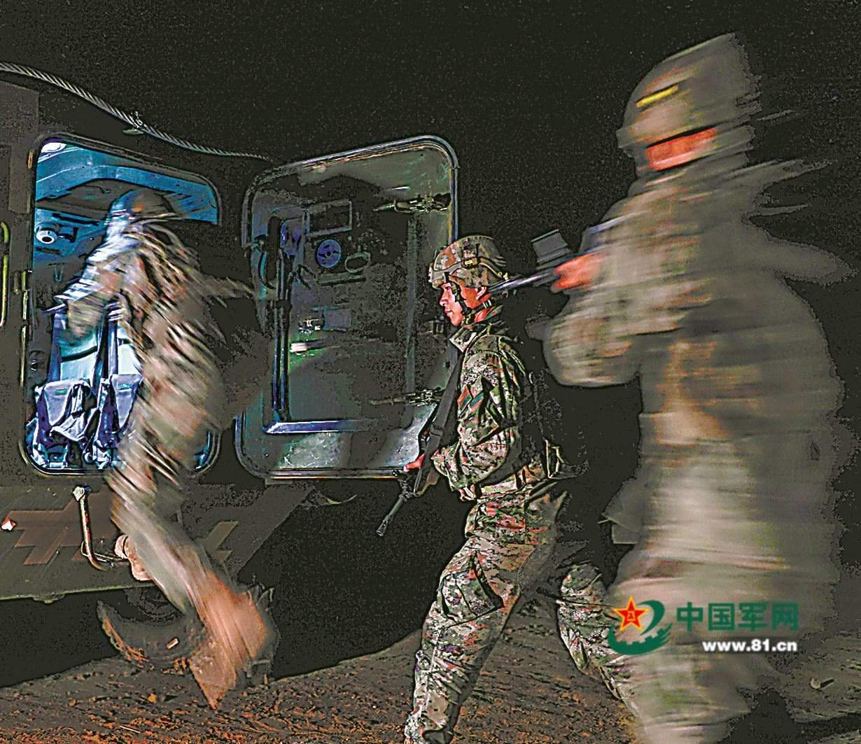 隊(duì)員快速登車。