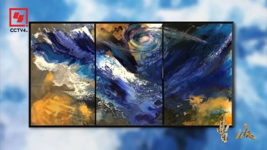 曹俊把中國的繪畫方式和西方的顏色技法相結(jié)合,以俯視地球的視角創(chuàng)作出了一組抽象作品,他把這些作品命名為“宇宙”系列,在這些作品中,他訴說了自己看到新西蘭自然景象時的心理活動。