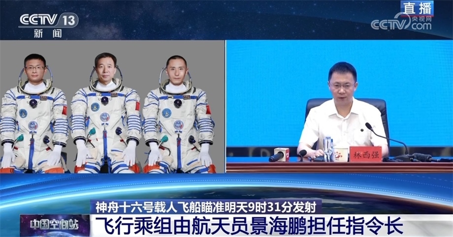 央視網(wǎng)消息:昨天(5月28日),任務(wù)總指揮部召開(kāi)會(huì)議,研究確定了神舟十六號(hào)載人飛船發(fā)射計(jì)劃和航天員飛行乘組。今天,我們邀請(qǐng)到中國(guó)載人航天工程辦公室副主任、工程新聞發(fā)言人林西強(qiáng)先生給大家介紹情況,并回答各位感興趣的問(wèn)題。