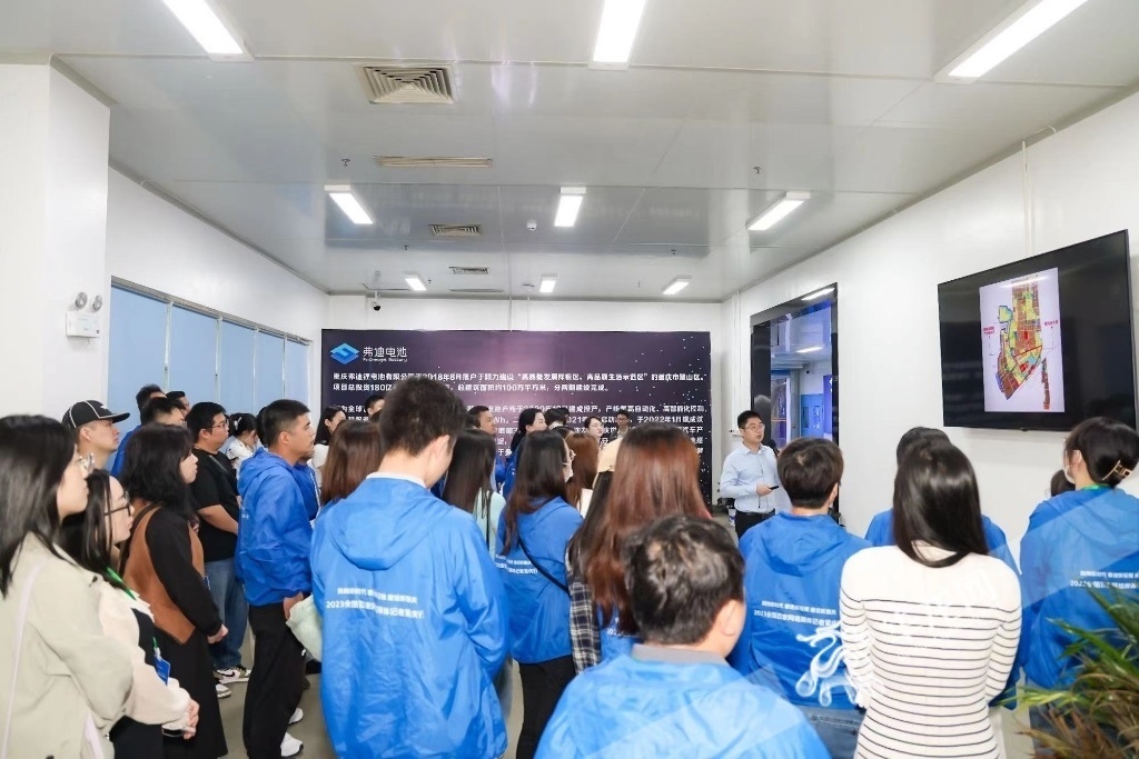 記者們跟隨講解員深入了解“刀片電池”相關(guān)信息。華龍網(wǎng)-新重慶客戶端 歐武夷 攝