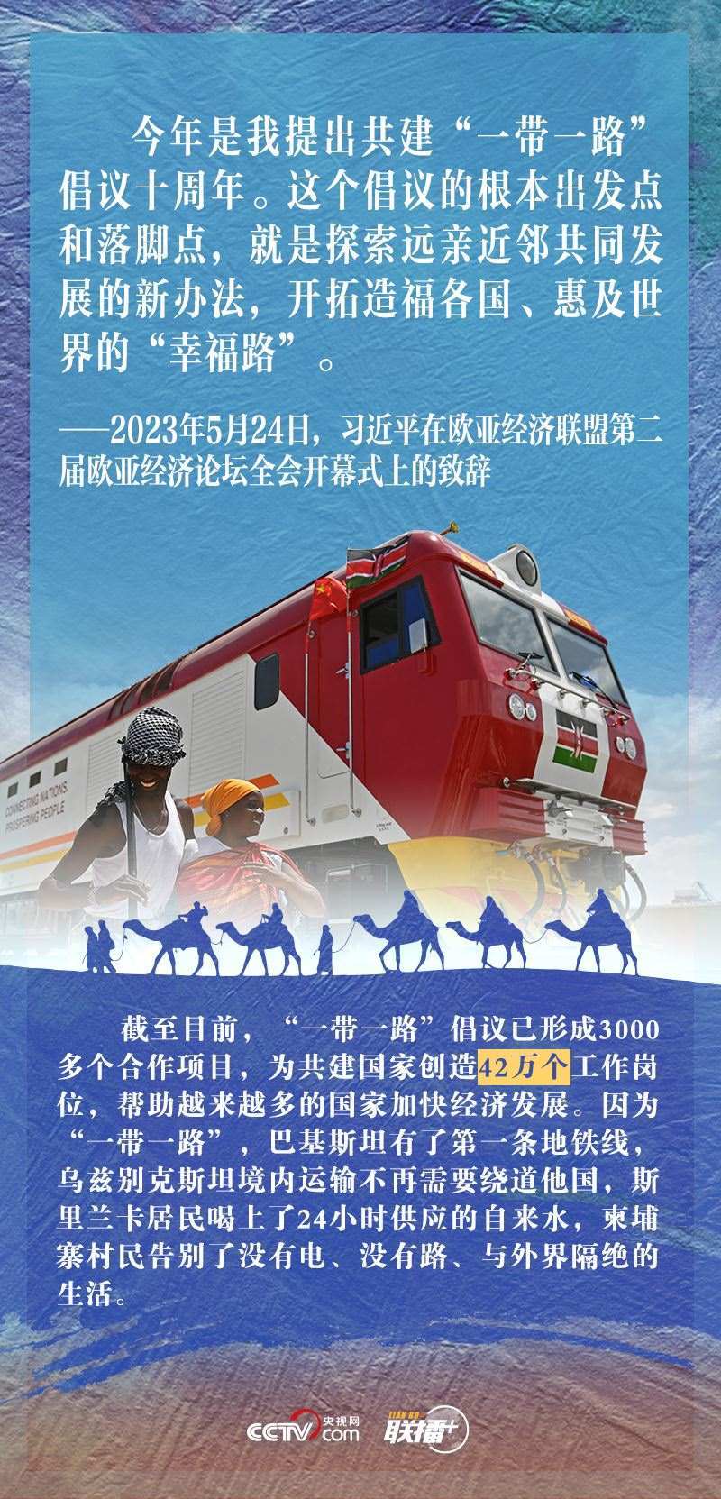 “今年是我提出共建‘一帶一路’倡議十周年。這個倡議的根本出發(fā)點(diǎn)和落腳點(diǎn),就是探索遠(yuǎn)親近鄰共同發(fā)展的新辦法,開拓造福各國、惠及世界的‘幸福路’?!?月24日,習(xí)近平主席在出席歐亞經(jīng)濟(jì)聯(lián)盟第二屆歐亞經(jīng)濟(jì)論壇全會開幕式并致辭時指出。