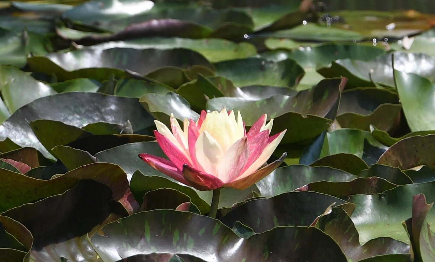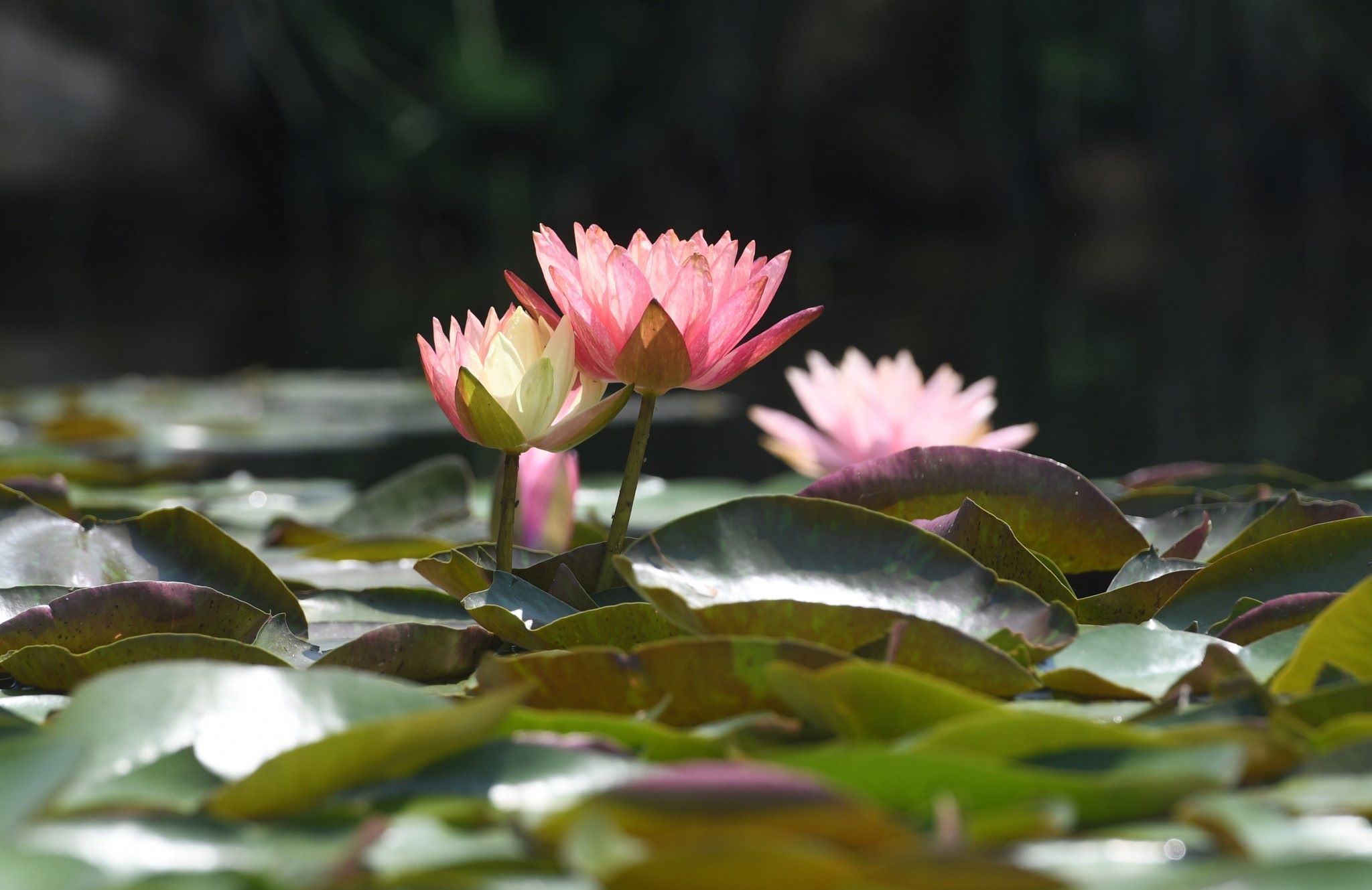 2023年5月29日,杭州良渚古城遺址公園多處水域的雙色睡蓮綻放,美不勝收。 視覺中國