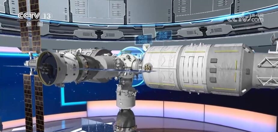 剛才我們通過虛擬演示從“外邊”了解了航天員如何從飛船進入空間站,接下來我們再通過動畫和上次兩個乘組“會師”的畫面,從“里邊”看一下這個過程。