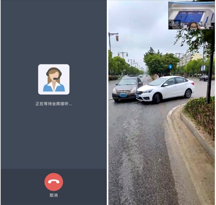 當(dāng)事人點(diǎn)擊“視頻報(bào)警”按鈕后,呼叫等待公安交管部門接警人員接聽(tīng),接警人員接聽(tīng)后進(jìn)入雙方視頻通話。