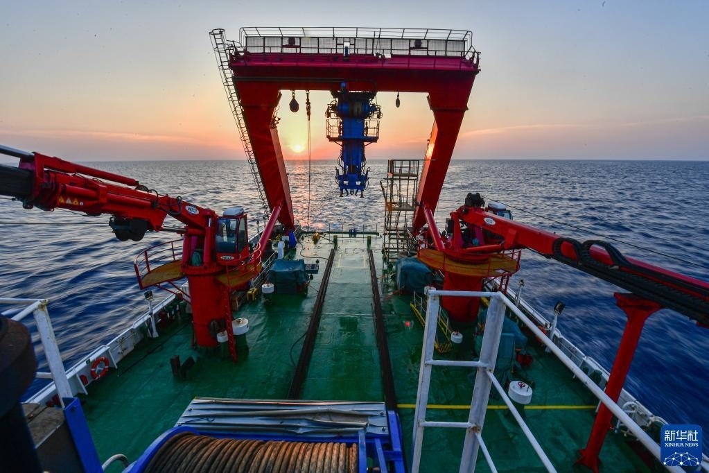 近日,由國(guó)家文物局考古研究中心、中國(guó)科學(xué)院深??茖W(xué)與工程研究所、中國(guó)(海南)南海博物館聯(lián)合組成的深??脊抨?duì)搭乘“探索一號(hào)”科考船,在南海西北陸坡一號(hào)、二號(hào)沉船遺址海域進(jìn)行第一階段調(diào)查。該科考船載有“深海勇士”號(hào)載人潛水器,用于水下考古數(shù)據(jù)采集。新華社記者隨船跟訪,直擊調(diào)查一線。   新華社記者 蒲曉旭 攝
