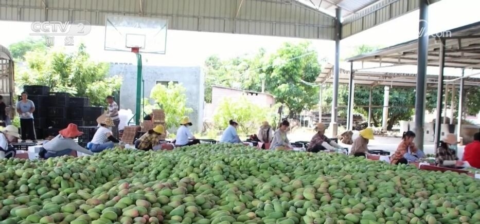 每天早上八點以后,新平縣漠沙鎮(zhèn)曼勒社區(qū)的芒果交易市場開始熱鬧起來。果農(nóng)將芒果運到市場進(jìn)行售賣,空氣中彌漫著濃濃的芒果香味。在曼線村,收購點的芒果堆成了“小山”,包裝好的芒果整整齊齊地排列在車廂里,即將被運送到全國市場。