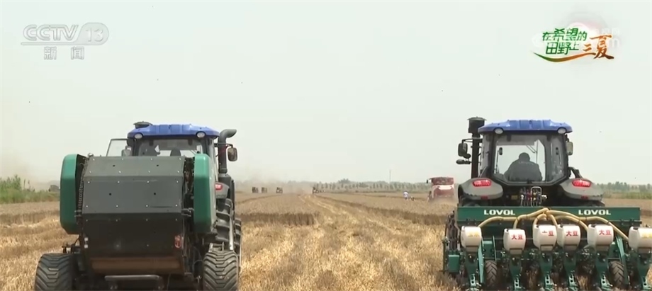 當(dāng)然,確保顆粒歸倉(cāng),除了要減損,更要及時(shí)搶收。今年麥?zhǔn)掌陂g,當(dāng)?shù)赜錾狭撕币?jiàn)的降雨天氣,而且4日開(kāi)始預(yù)計(jì)還會(huì)有一輪降雨,所以大比武的同時(shí),搶收也在抓緊進(jìn)行,大家要抓緊這幾天的窗口期,進(jìn)行24小時(shí)的搶收作業(yè)。農(nóng)業(yè)專家告訴我,在當(dāng)?shù)?,降雨?duì)于麥?zhǔn)盏挠绊懹袃牲c(diǎn),一個(gè)是土地變得潮濕松軟,大型機(jī)械下地難。針對(duì)這點(diǎn),當(dāng)?shù)匾膊扇×舜胧?,在一些土地還沒(méi)有干透的麥田里,我們看到有不少履帶式的收割機(jī),它們雖然體型稍小,但履帶可以避免陷入土地,還有一些無(wú)人駕駛的智慧農(nóng)機(jī),可以解決搶收時(shí)的人手問(wèn)題。這些都是當(dāng)?shù)剞r(nóng)業(yè)部門按照農(nóng)戶需求及時(shí)幫助調(diào)配的。目前,阜南全縣投入聯(lián)合收割機(jī)4300多臺(tái),組建了搶收服務(wù)隊(duì)76個(gè)、農(nóng)機(jī)維修服務(wù)隊(duì)28個(gè),將爭(zhēng)取在5天內(nèi)完成全部麥?zhǔn)铡?/p>