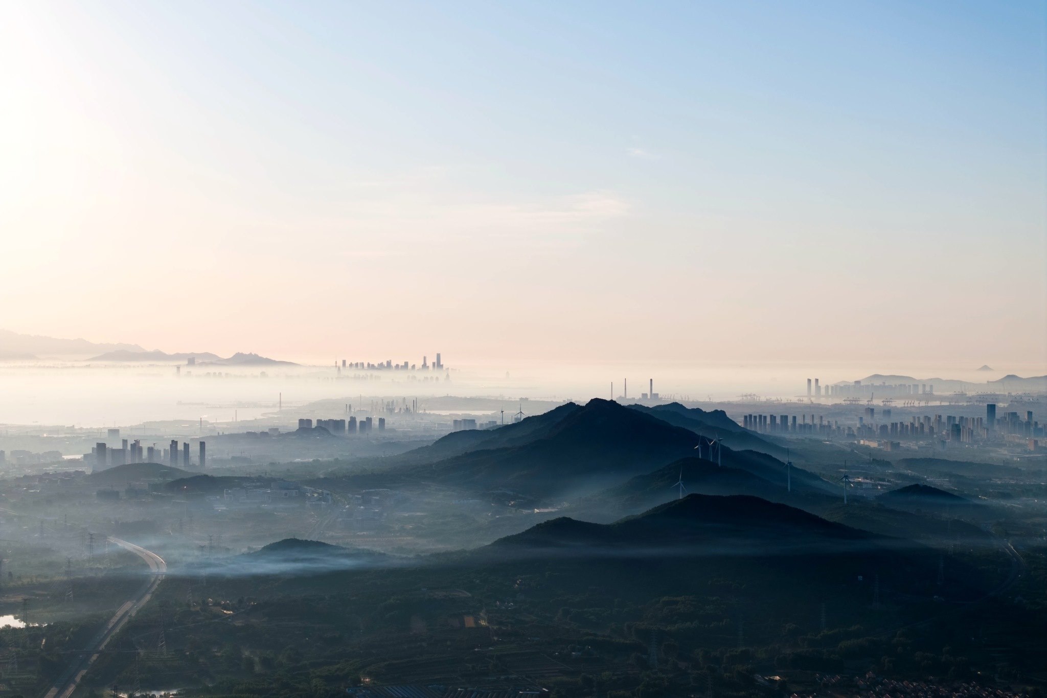 2023年6月3日,青島,膠州灣畔晨景如畫。視覺(jué)中國(guó)