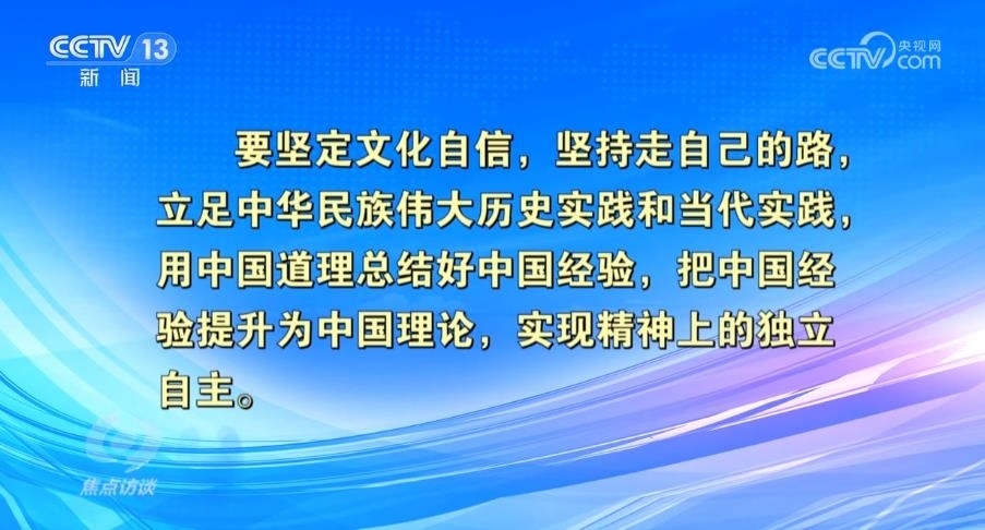 腳踏必由之路,譜寫時代華章。在新的歷史起點上,我們應當如何擔當起新的文化使命,如何繼續(xù)推動文化繁榮、建設文化強國、建設中華民族現(xiàn)代文明?習近平總書記提出了三點具體要求,要堅定文化自信,堅持走自己的路,立足中華民族偉大歷史實踐和當代實踐,用中國道理總結(jié)好中國經(jīng)驗,把中國經(jīng)驗提升為中國理論,實現(xiàn)精神上的獨立自主。要秉持開放包容,堅持馬克思主義中國化時代化,傳承發(fā)展中華優(yōu)秀傳統(tǒng)文化,促進外來文化本土化,不斷培育和創(chuàng)造新時代中國特色社會主義文化。要堅持守正創(chuàng)新,以守正創(chuàng)新的正氣和銳氣,賡續(xù)歷史文脈、譜寫當代華章。