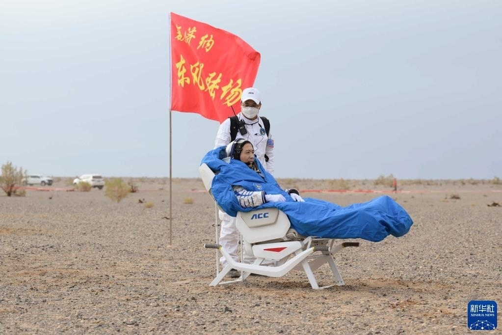 6月4日,神舟十五號(hào)載人飛船返回艙在東風(fēng)著陸場(chǎng)成功著陸。這是航天員張陸安全順利出艙。新華社記者 李志鵬 攝
