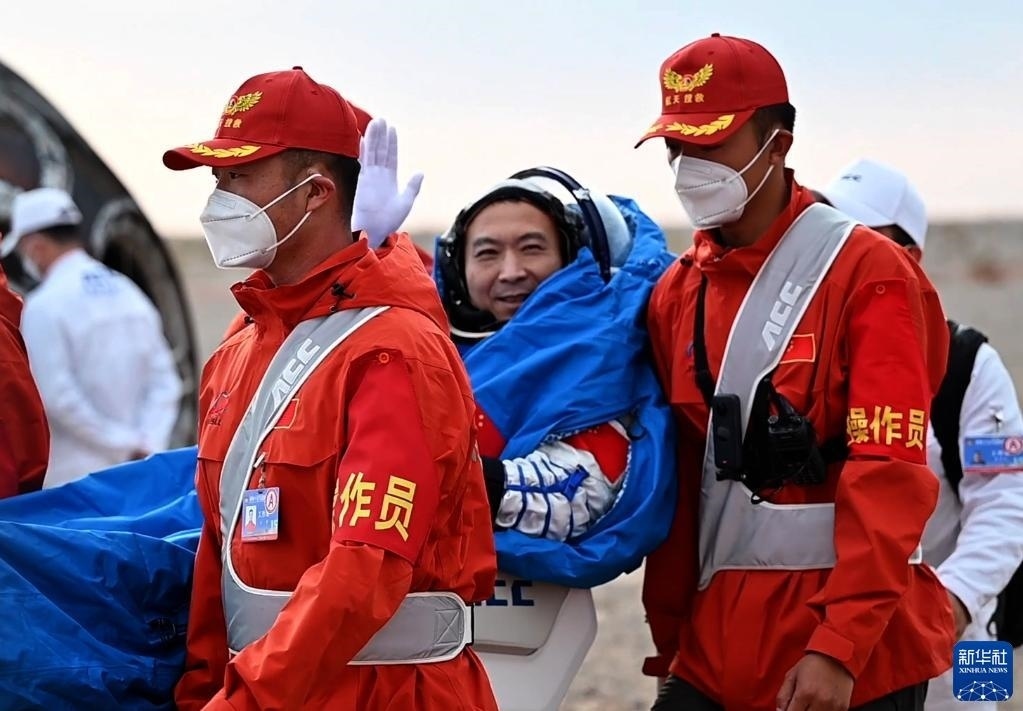 6月4日,神舟十五號(hào)載人飛船返回艙在東風(fēng)著陸場(chǎng)成功著陸,神舟十五號(hào)載人飛行任務(wù)取得圓滿成功。這是航天員鄧清明安全順利出艙。新華社記者 連振 攝
