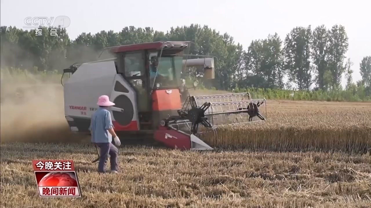 河南安陽滑縣留固鎮(zhèn)程新莊村 農(nóng)機(jī)手 周勇:早上從7點(diǎn)開始干,干到現(xiàn)在,(收)了一百四五十畝,兩個(gè)師傅輪流,人歇機(jī)器不歇,抓緊時(shí)間,把老百姓的小麥搶收到家。