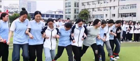 在浙江寧波寧海縣知恩中學(xué),學(xué)校為700多名高三學(xué)生組織了一場(chǎng)快樂(lè)迎考、趣味闖關(guān)活動(dòng)。節(jié)奏輕快的竹竿舞、活潑有趣的“兩人三足”,讓同學(xué)們?cè)谟螒蛑蟹潘尚那椤?/span>