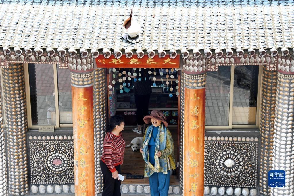 這是6月7日拍攝的“貝殼樓”,其外墻、屋頂以及部分地面都采用了貝殼裝飾(無人機(jī)照片)。