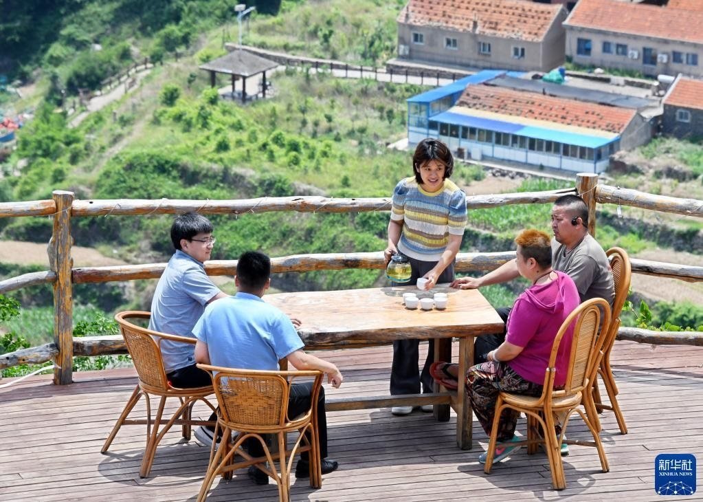 6月5日,游客在靈山島省級自然保護區(qū)一民宿飲茶休閑。