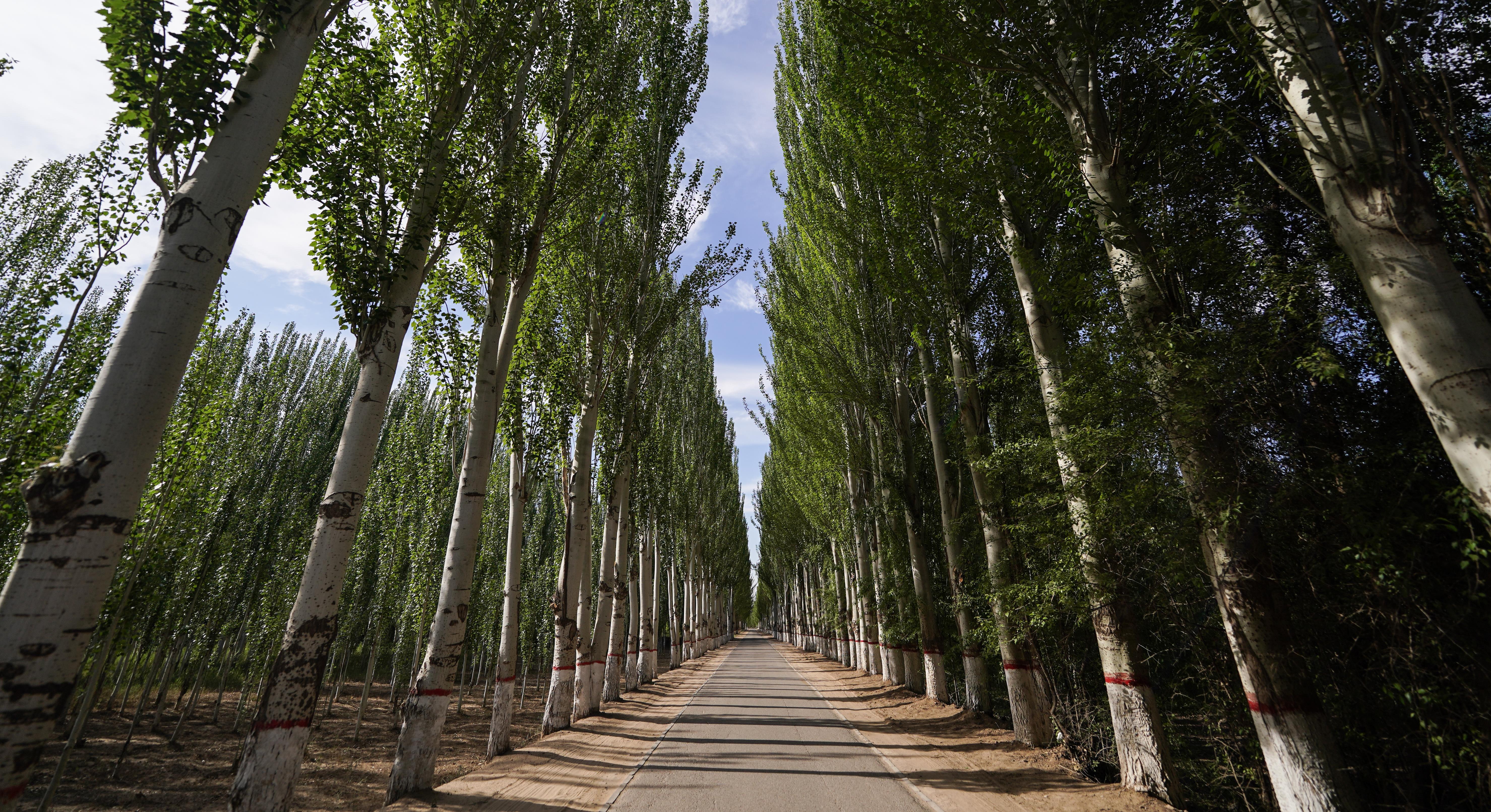 △內(nèi)蒙古巴彥淖爾市臨河區(qū)國營新華林場的防護(hù)林(總臺國廣記者李晉拍攝)