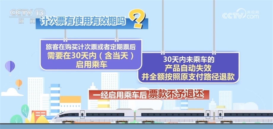 旅客在購(gòu)買計(jì)次票或者定期票后,需要在30天內(nèi)(含當(dāng)天)啟用乘車,30天內(nèi)未乘車的,產(chǎn)品自動(dòng)失效并全額按照原支付路徑退款。一經(jīng)啟用乘車后,票款不予退還。