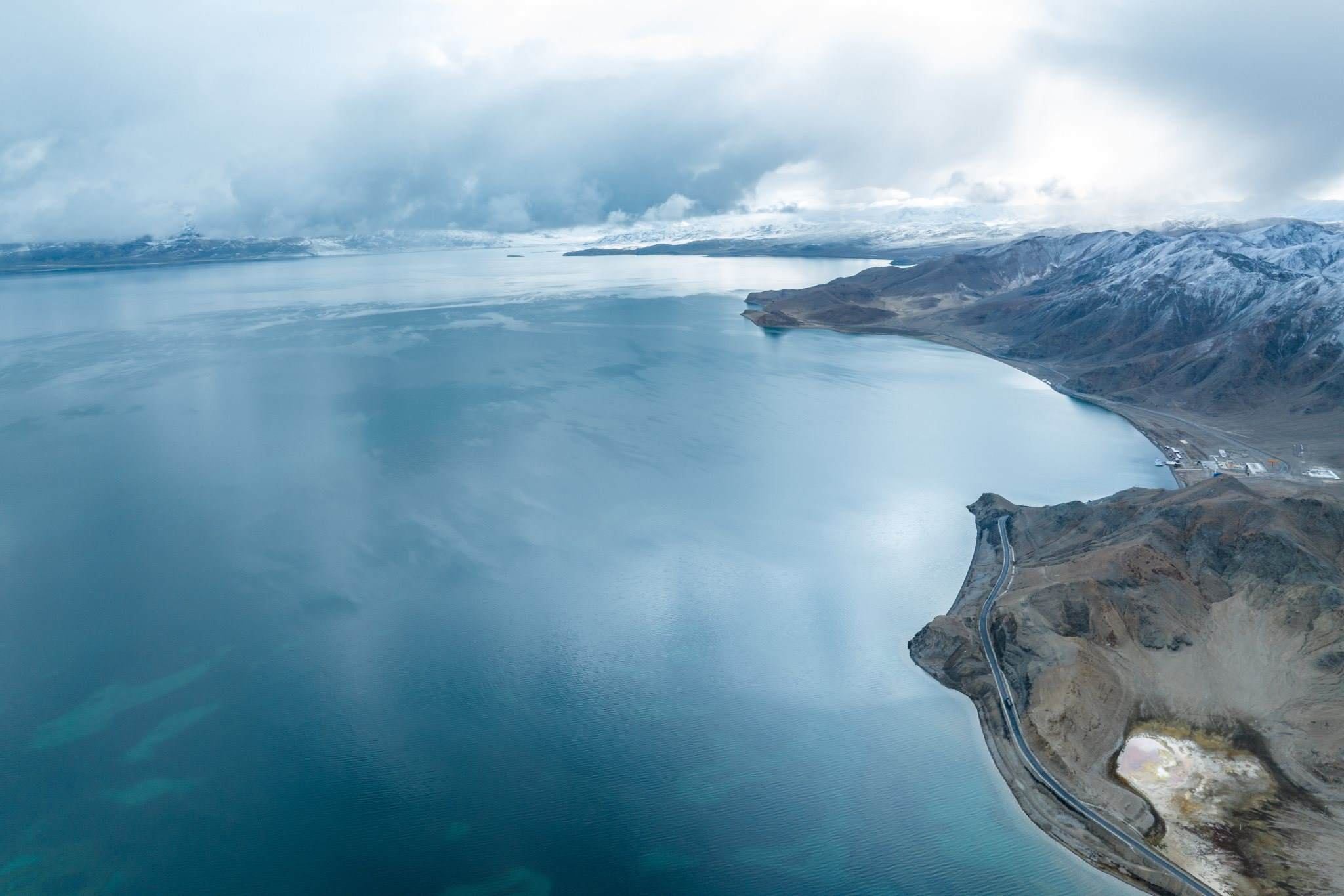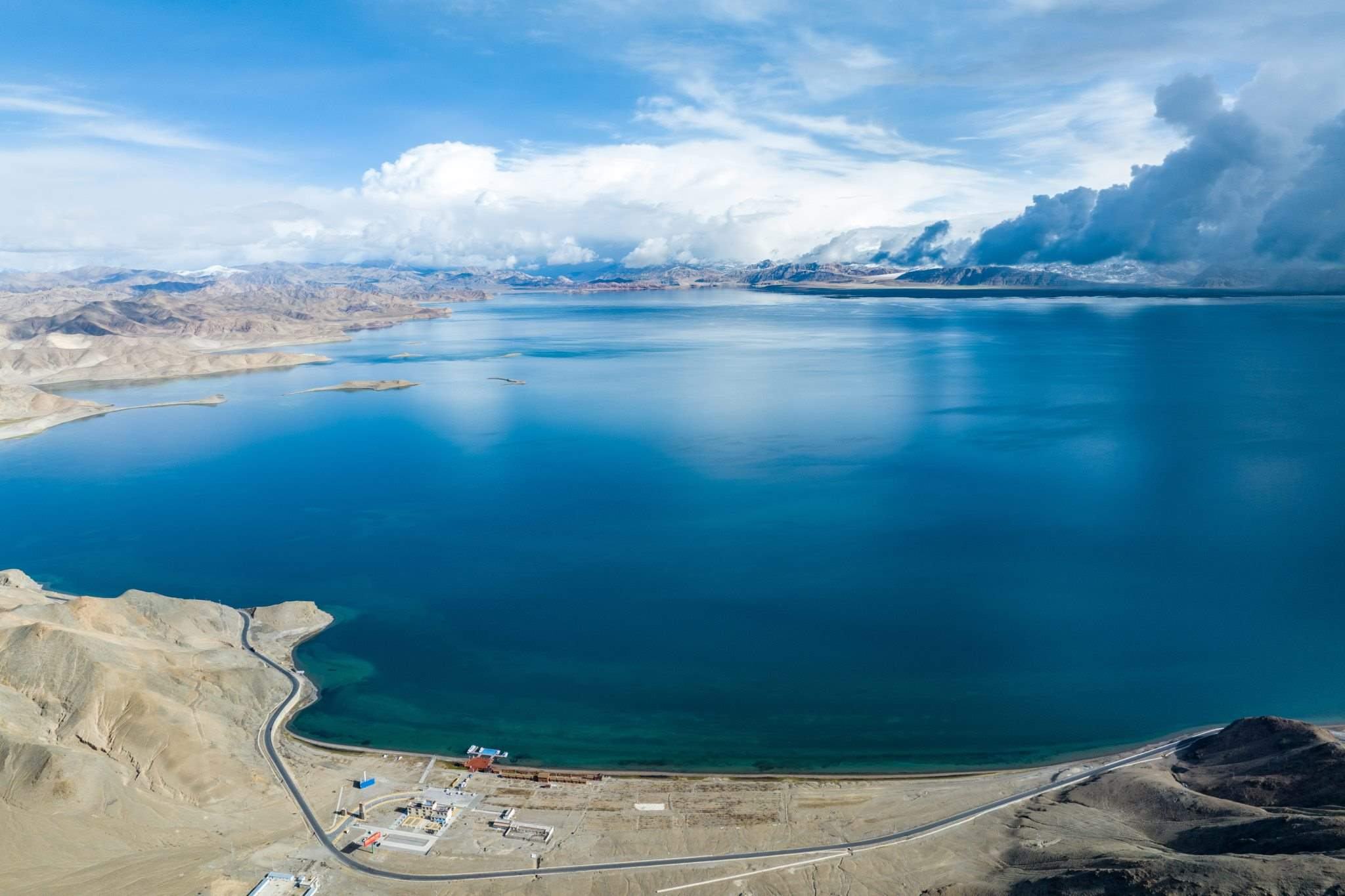 2023年6月6日,西藏阿里,日土縣班公湖,湛藍的湖水、潔白的雪山、奇特的沿湖景觀,構成一幅夏日醉美畫卷。視覺中國