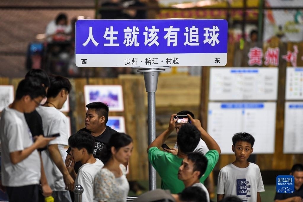 這是6月9日在貴州“村超”足球比賽現(xiàn)場拍攝的一處標語牌。