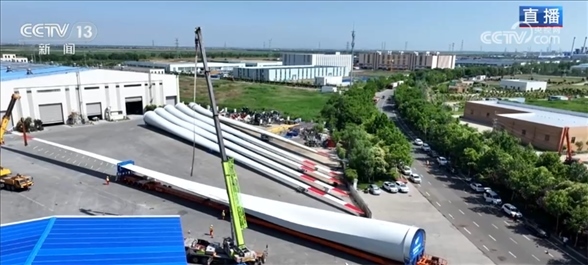 央視網(wǎng)消息:今天(6月14日),在江蘇連云港,100%我國自主知識產(chǎn)權(quán)的123米超長海上風電葉片剛剛完成正式安裝前的全部測試,整裝待發(fā)。總臺央視記者古峻嶺此刻就在這個葉片裝車啟運的現(xiàn)場,我們一起來連線他。
