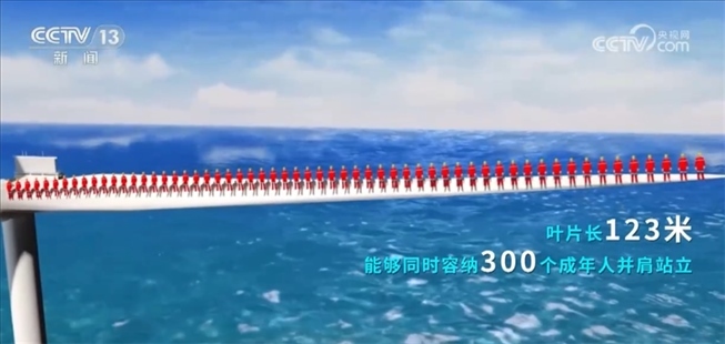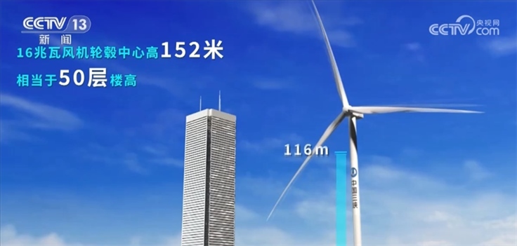 剛才我們看到的葉片只是風電機組的一部分,那么這臺16兆瓦超大容量海上風電機組整體有多大?它的發(fā)電能力如何?我們一起通過一組數(shù)字更直觀地了解它。
