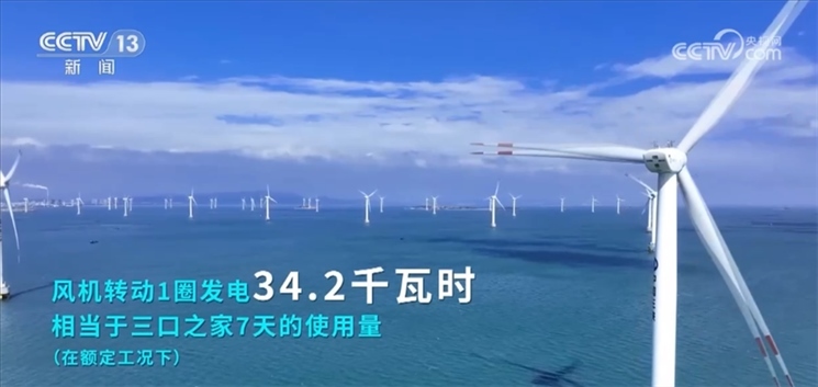 風機轉(zhuǎn)動1圈發(fā)電34.2千瓦時,相當于三口之家7天的使用量(額定工況下),1小時發(fā)電1.6萬千瓦時,相當于每分鐘發(fā)電267千瓦時(額定工況下)。