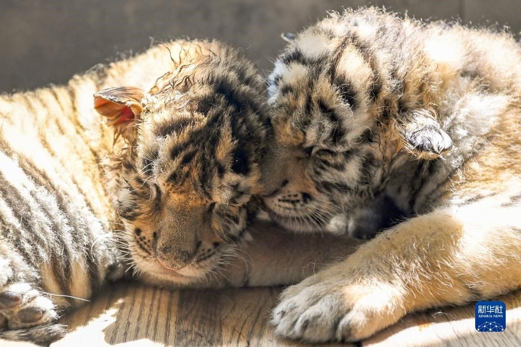 目前,黑龍江東北虎林園今年新出生的東北虎幼崽大部分已滿(mǎn)月。這些活潑好動(dòng)的小東北虎天氣好時(shí)就會(huì)被送到室外活動(dòng),在飼養(yǎng)員的悉心照料下茁壯成長(zhǎng)。新華社記者 謝劍飛 攝