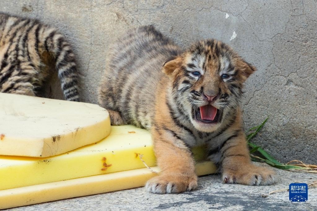 目前,黑龍江東北虎林園今年新出生的東北虎幼崽大部分已滿(mǎn)月。這些活潑好動(dòng)的小東北虎天氣好時(shí)就會(huì)被送到室外活動(dòng),在飼養(yǎng)員的悉心照料下茁壯成長(zhǎng)。新華社記者 王大禹 攝