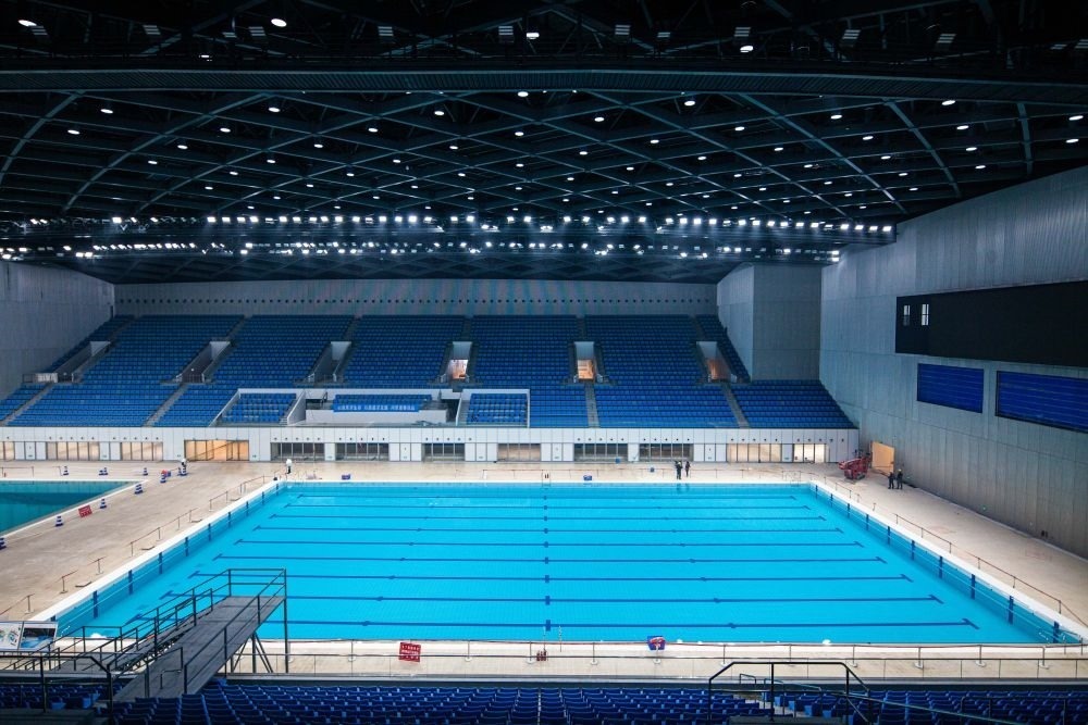 杭州奧體中心游泳館可容納觀眾6000人,設(shè)有比賽池、跳水池、熱身池等五個水池,將舉辦杭州亞運(yùn)會游泳、跳水和花樣游泳三項比賽,決出53枚金牌,是杭州亞運(yùn)會產(chǎn)生金牌最多的場館。
