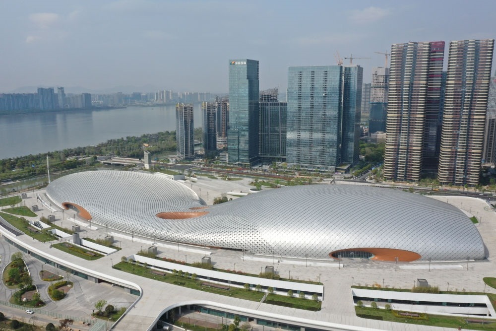 2021年8月2日拍攝的杭州奧體中心場館群(無人機(jī)照片)。新華社發(fā)(杭州亞組委供圖)