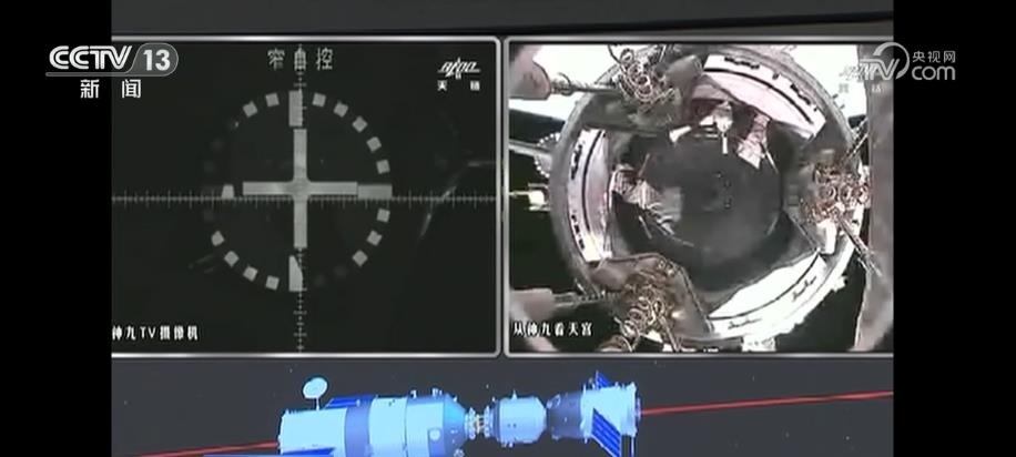 2012年6月24日,天宮一號與神舟九號實(shí)施分離操作,神舟九號飛船來到140米停泊點(diǎn),12時(shí)42分,神舟九號從自動(dòng)控制狀態(tài)轉(zhuǎn)為手動(dòng)控制。在景海鵬和劉洋的配合下,劉旺手動(dòng)操控重量超過8噸、長達(dá)9米的神舟九號飛船,以“百米穿針”的中國精度,成功完成了首次手控交會對接。