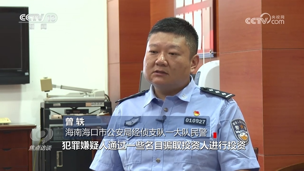 海南??谑泄簿纸?jīng)偵支隊(duì)一大隊(duì)民警曾軼:“舉報(bào)到我們??谑械慕鹑诰?,由金融局牽頭??谑卸鄠€(gè)相關(guān)職能單位,包括稅務(wù)、工商、公安相關(guān)單位一起成立了聯(lián)合調(diào)查組。這個(gè)公司如果是一個(gè)正常的新能源充電樁公司,收益會(huì)源源不斷進(jìn)入公司的賬戶,我們?cè)谡{(diào)取相關(guān)銀行流水的過程中發(fā)現(xiàn)沒有?!?/p>