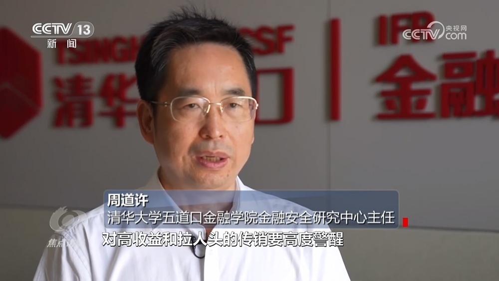 清華大學(xué)五道口金融學(xué)院金融安全研究中心主任周道許:“有兩個(gè)明顯的特征,第一個(gè)就是高回報(bào)、高收益率,誘使人投資他的項(xiàng)目,一般會(huì)采取傳銷拉人頭的方式來推銷他的產(chǎn)品。對(duì)高收益和拉人頭的傳銷要高度警醒,同時(shí)要借助專業(yè)的力量,頭腦一發(fā)熱錢就砸進(jìn)去了,后悔就太晚了?!?/p>