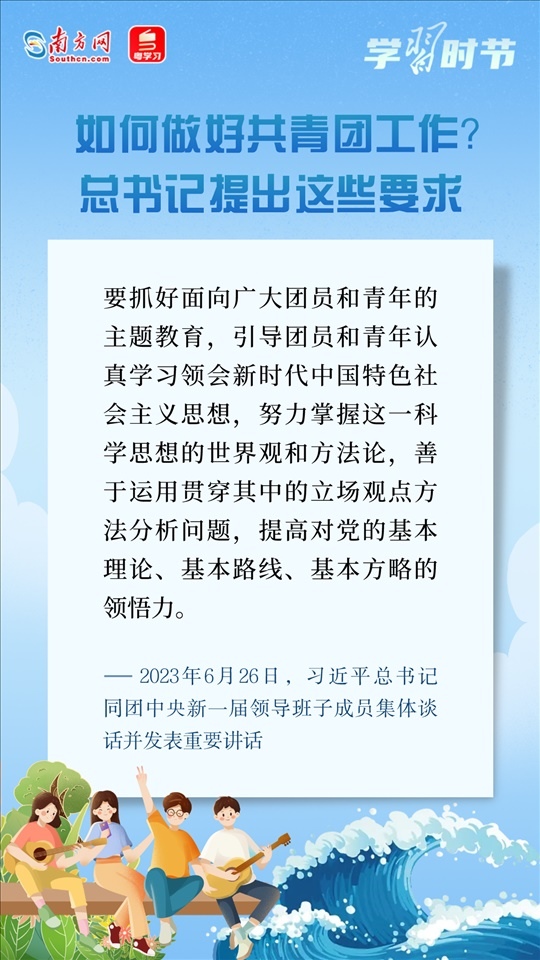 6月26日,習近平總書記同團中央新一屆領(lǐng)導班子成員集體談話并發(fā)表重要講話??倳洀娬{(diào),黨和國家事業(yè)的希望寄托在青年身上。希望共青團中央深入貫徹黨中央要求,切實肩負起新時代新征程黨賦予的使命任務,傳承弘揚優(yōu)良傳統(tǒng),堅持改革創(chuàng)新,更好把青年一代團結(jié)凝聚在黨的周圍,為推進強國建設(shè)、民族復興偉業(yè)接續(xù)奮斗。