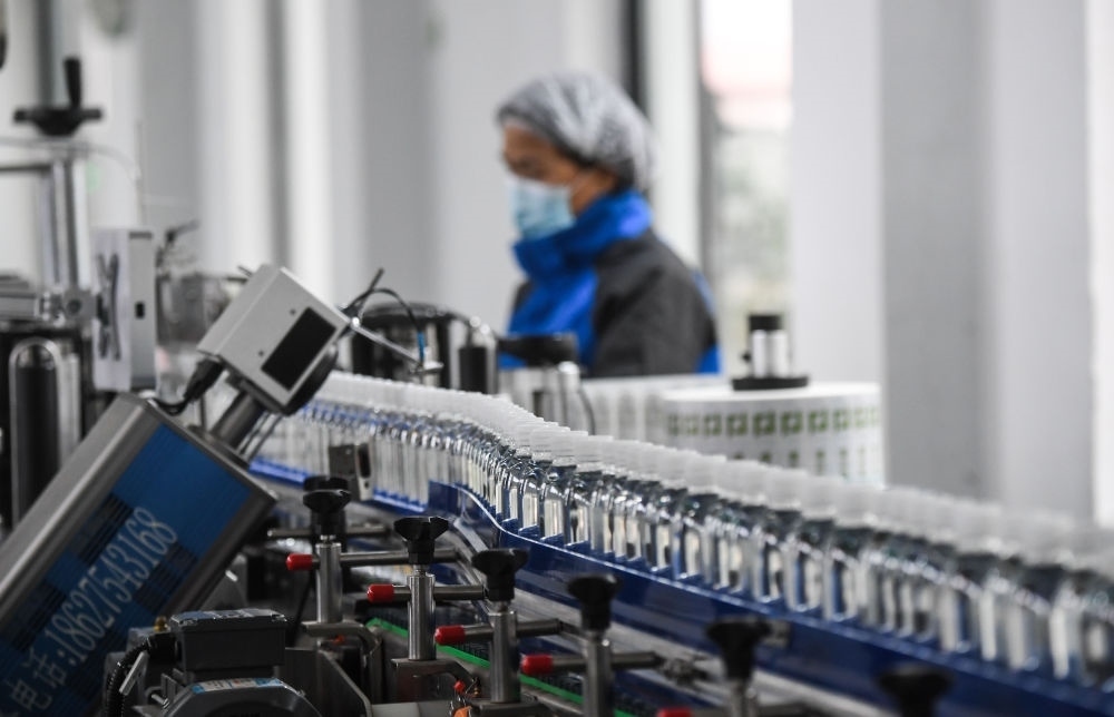 在浙江淳安經濟開發(fā)區(qū)一家水飲料企業(yè)拍攝的瓶裝水生產線(2020年12月8日攝)。新華社記者 徐昱 攝